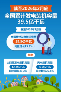 国家能源局:截至2月底全国累计发电装机容量39.5亿千瓦,同比增长15.9%