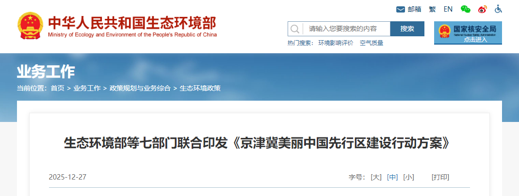 生态环境部、国家发改委等七部门联合印发重要行动方案