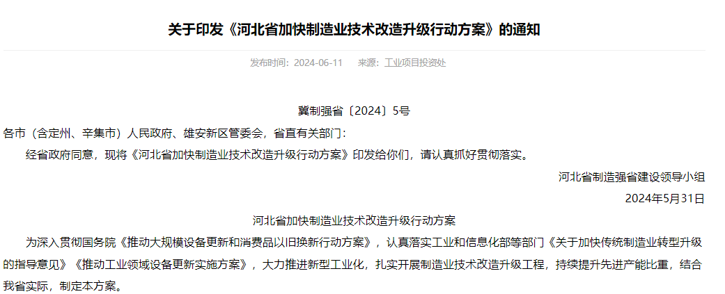 《行动方案》印发!河北省重点领域能效要达到基准水平以上