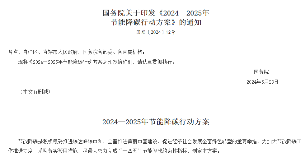国家发展改革委负责同志就《2024—2025年节能降碳行动方案》答记者问
